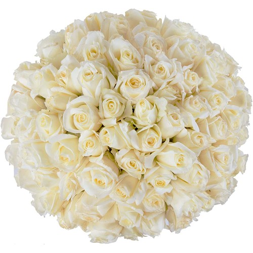 Inspiraterra - 100 Long Stem Roses - Fresh Cut. Delivered at Your Door Within 4 Business Days. (Bulk) (White)